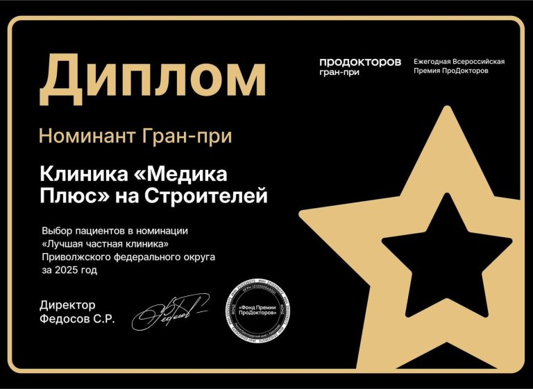 Клиника «Медика Плюс» стала номинантом Гран-при Премии ПроДокторов 2025 в категории «Лучшая частная клиника Приволжского федерального округа — выбор пациентов».